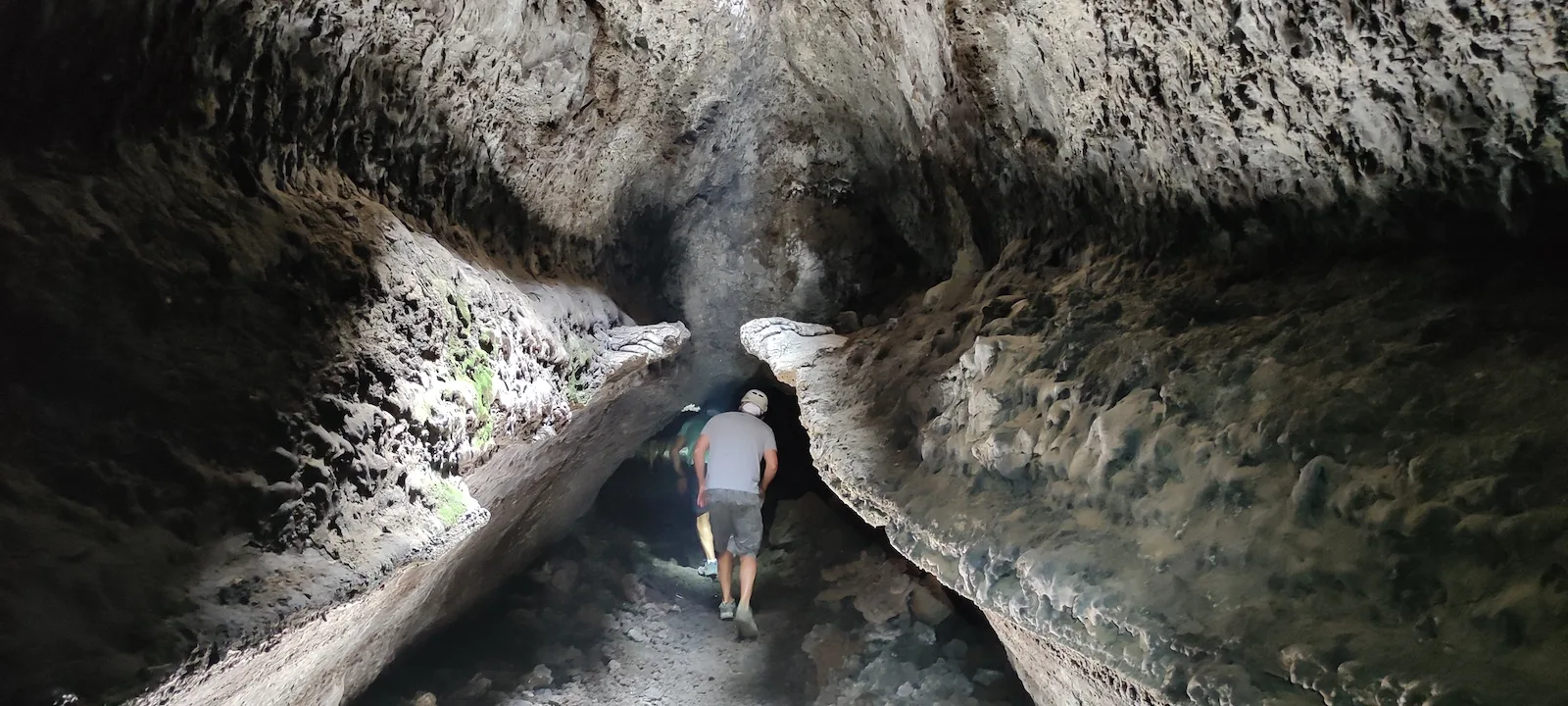 There are no limits to the diversity of La Palma. Even those who think they already know the island like the back of their hand will be amazed on this tour. On June 23, 1949, the earth cracked open in several places and a gigantic stream of lava poured over the Aridane Valley to the sea. The lava created several caves and tunnels. First we walk along a stilt path from which we can see the curious lava structures and formations from above. We will explain to you the peculiarities of volcanism, how a lava tube is formed and what these structures have been used for over thousands of years. With helmets and headlamps, we venture inside the cave and marvel together at the power of nature in the “Cueva de las Palomas” volcanic tunnel.